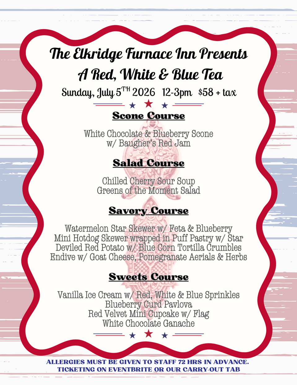 The Elkridge Furnace Inn is a full-service historic venue and catering company off the banks of the Patapsco River in historic Elkridge, Maryland. We pride ourselves on our scenic views, locally sourced & grown ingredients, dedication to hospitality, and outstanding culinary creations. It is our mission to deliver the same level of service that made The Elkridge Furnace Inn Baltimore’s home for exceptional hospitality for over thirty years. Our team assists in menu planning, timeline creation, vendor recommendations, and all on-site details. We offer professional guidance to ensure your vision is not only heard, but realized.